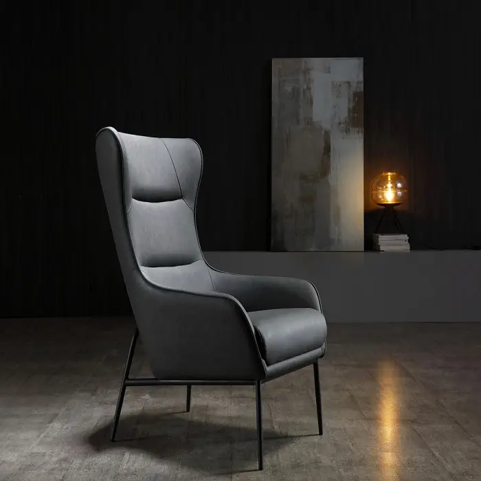 Wyatt Leisure Chair, Blue ,Light Grey or Dark Grey Faux Leather. Sanded Black Coated Steel Base
