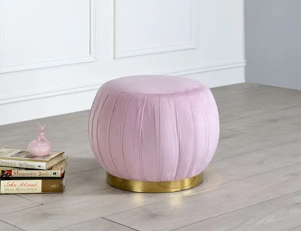 Assembled, Backless Round Ottoman (NO Storage) Fully Padded Seat: Velvet Armless Wooden Inner Frame Metal Round Base: Gold Finish